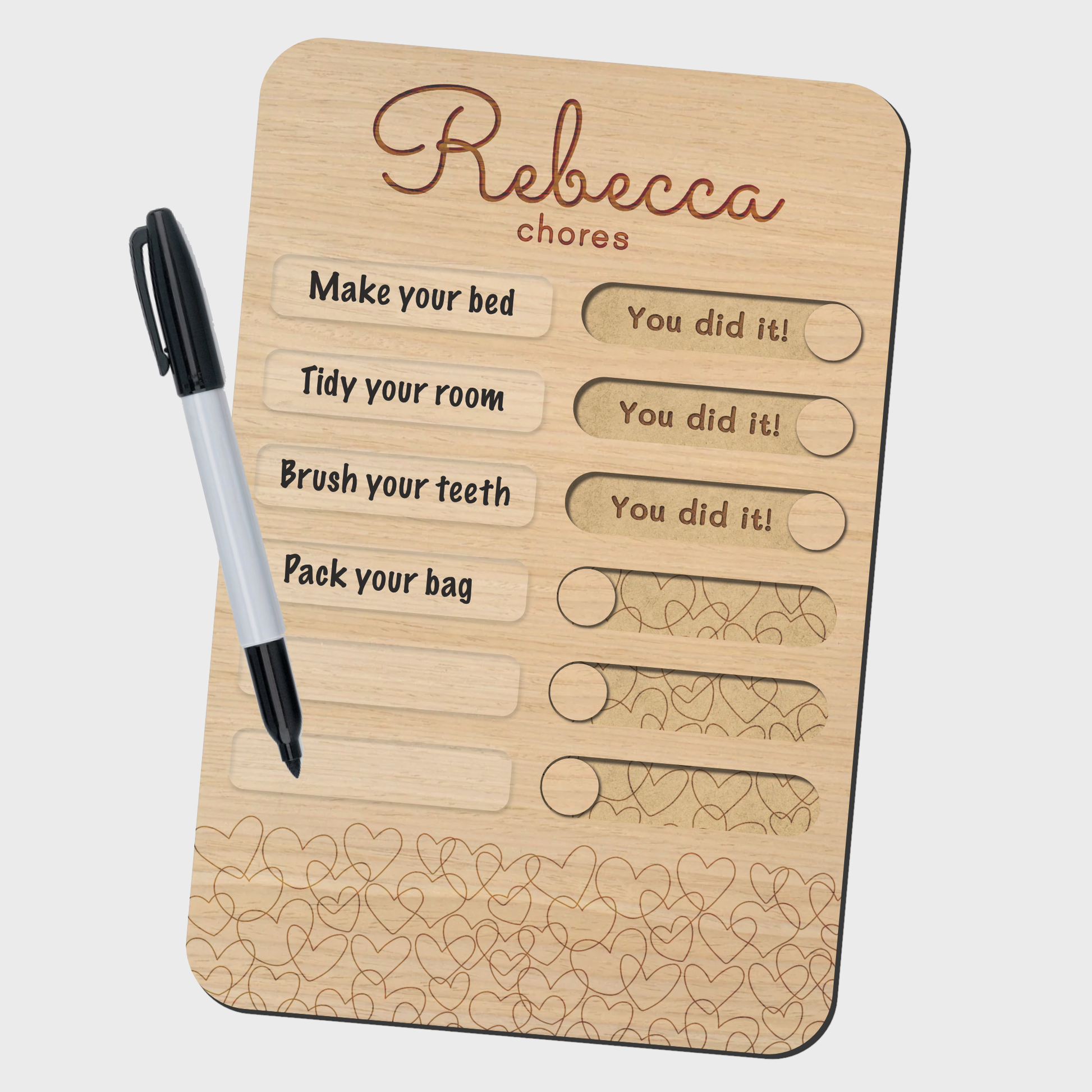 Turn everyday routines into exciting achievements with our personalised wooden kids' chart! Thoughtfully designed to support growing independence and responsibility, this durable A4-sized chart is perfect for children to visually track tasks like their morning checklist, homework goals, or weekend to-dos.