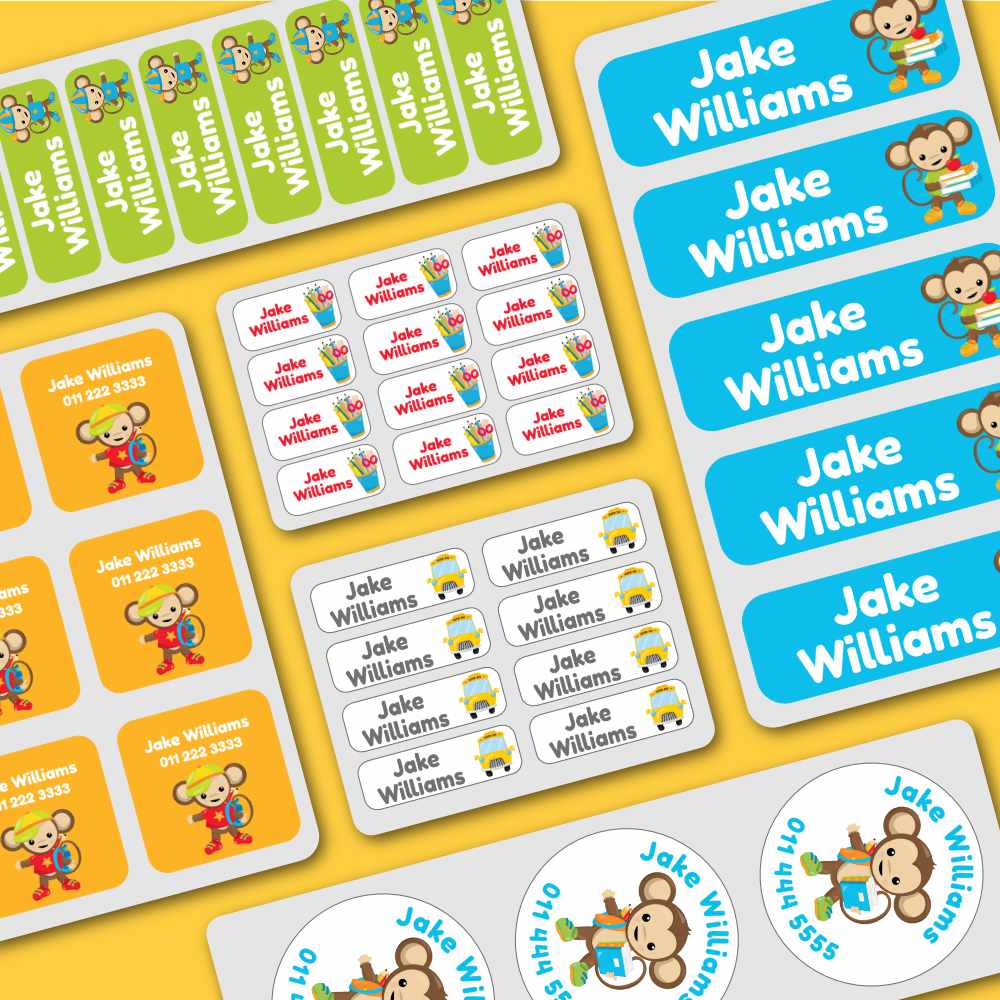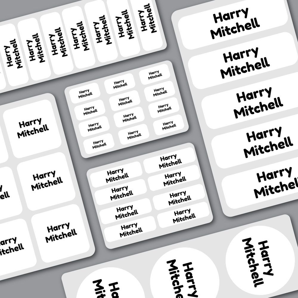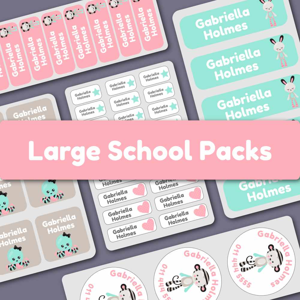 Our new colourful range of school labels are bright, beautiful and perfect for labelling just about everything! From lunch boxes, juice bottles and stationery to clothing, shoes and bags. You have the option to add a contact number to the large labels, circle labels, shoe labels and iron-on labels. If you want to order a label pack for the whole family to share, leave off the first name and simply include your surname! Our Large School pack has all you need to label everything with the following: