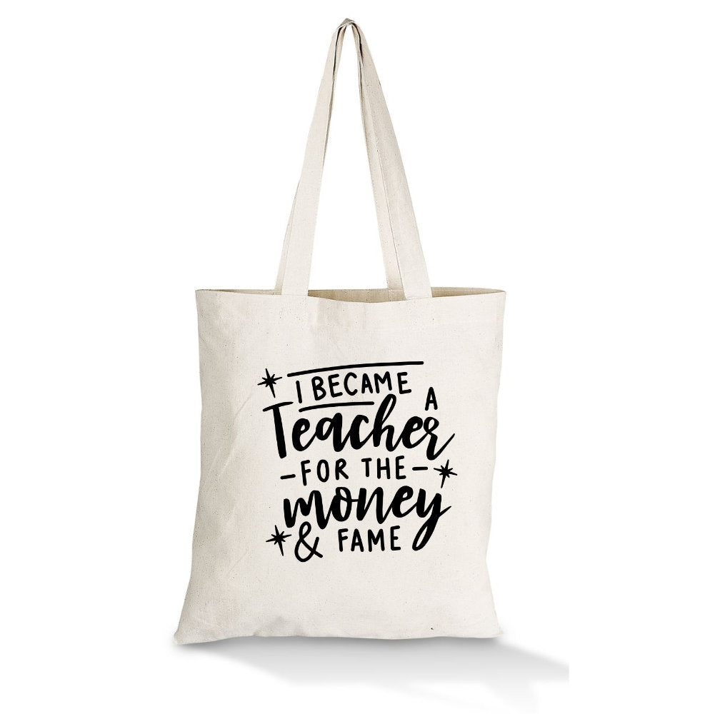 Our personalised totes, with teacher quotes (that will be sure to add cheer to the sternest of educators), is the perfect addition to any teacher's essentials. These simple, plain cotton totes are great to help keep things together. If you're on the hunt for the perfect teacher bag, these are a great choice. Add an optional personal touch by adding in your teacher's name. Each teacher-tote features a design on one side, with a personalised name on the back.