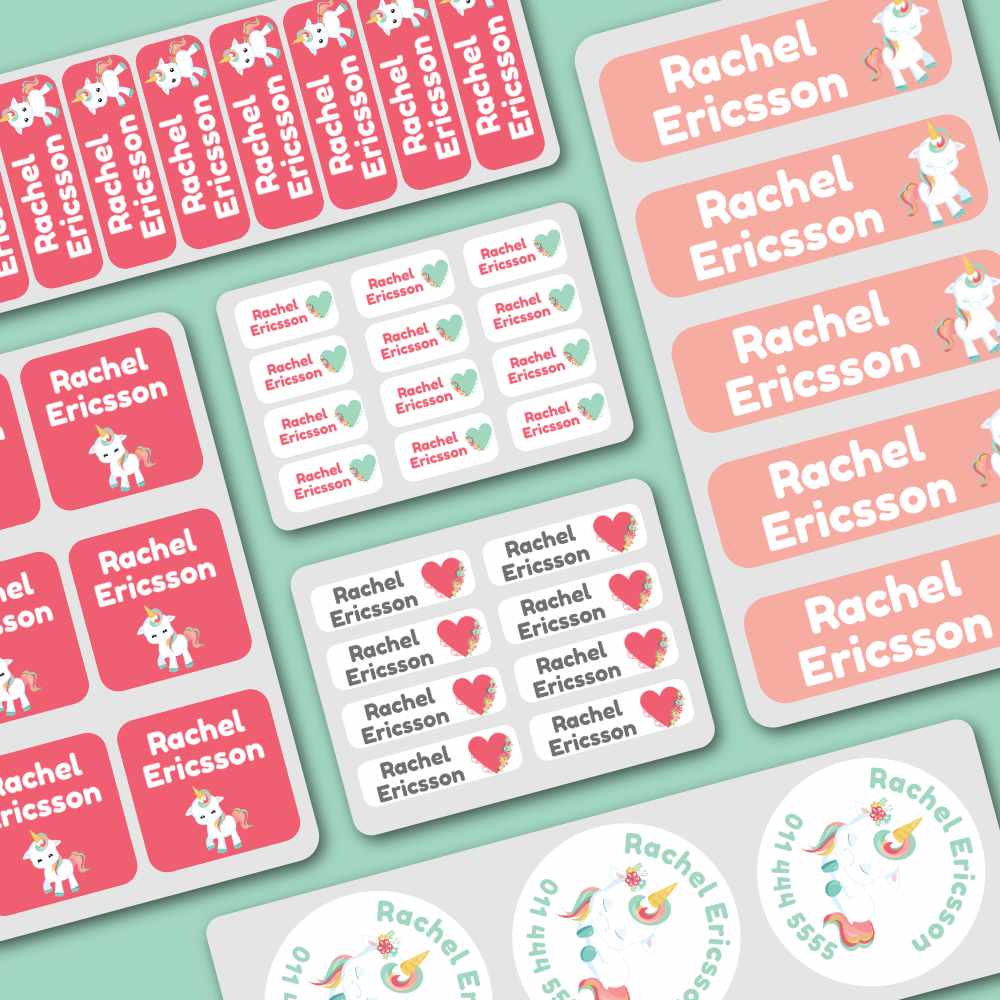 You have the option to add a contact number to the large labels, circle labels, shoe labels and iron-on labels. If you want to order a label pack for the whole family to share, leave off the first name and simply include your surname!